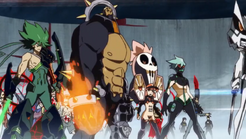 На протяжении нескольких эпизодов, студенты воюет в униформе, усиленной с помощью кусочков Всепокров Рюко. Это повышало эффективность Архиформы в несколько раз.