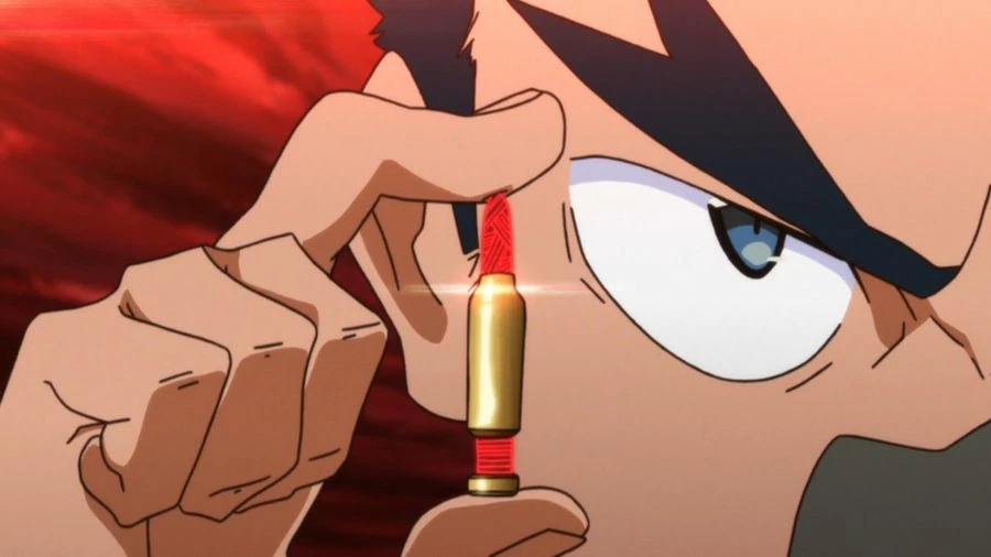 По мимо обычных патронов Нудистский пляж использует особые, способные полностью подавлять связи Нитей жизни. Они внешне отличаются тем, что сапа пуля красного цвета и излучает слабое свечение. Такие патроны, судя по всему, большая редкость, так как на момент эпизода 11 в распоряжении Цумугу Кинагасэ был всего один такой. Он передал его Айкуро Микисуги, который опасался, что быстро развивающийся Кровавый выйдет из под контроля Рюко