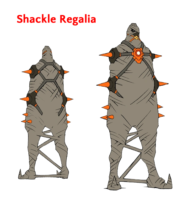 | 2. | Shackle Regalia | Gamagōri's three-star goku uniform, Shackle Regalia takes the form of a bluish-white coat with silver highlights and three black stars emblazoned on the front. It also has a high collar with three smaller stars on the front, silver epaulets, three spikes around the shoulders, large metal gauntlets with three spikes on the back of the hand, matching white pants with metal boots that has three spikes on it. | Ira Gamagōri | |