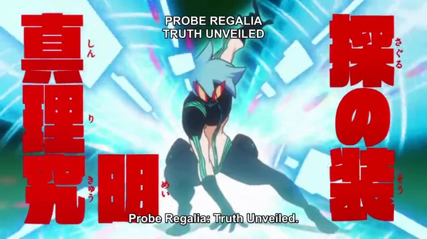 | 3. | Probe Regalia | Inumuta's three-star goku uniform, Probe Regalia, takes the form of a bluish-white coat with silver highlights and three black stars emblazoned on the front. It also has a high collar that covers his mouth and opens when he talks, three smaller stars on the front of the collar, silver epaulets with three small spikes on each one, six spiked pouches around the waist, a large cable linking the back of his neck to the back of his belt, a pair of smaller cables that lead from each arm into the waist pouches, matching white pants and boots with one cable linking the back of the knees to each other. | Hōka Inumuta | |