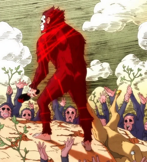When a Humanoid COVER absorbs a human being as an energy source, it becomes a Combat Enhanced COVER that specialises in combat and can operate independently from the Original Life Fiber. In this form, the COVER gains a more substantial, muscular appearance, with their "bowtie" enlarging into eye-like growths and a necktie-shaped hole appearing in their chests that bears the emaciated face of its absorbee. Once the human inside is removed, their movement ceases, and eventually break down into threads of Life Fiber.