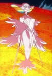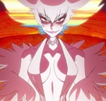 Ragyō wearing Shinra-Kōketsu with a sketch of Ragyō's faces.